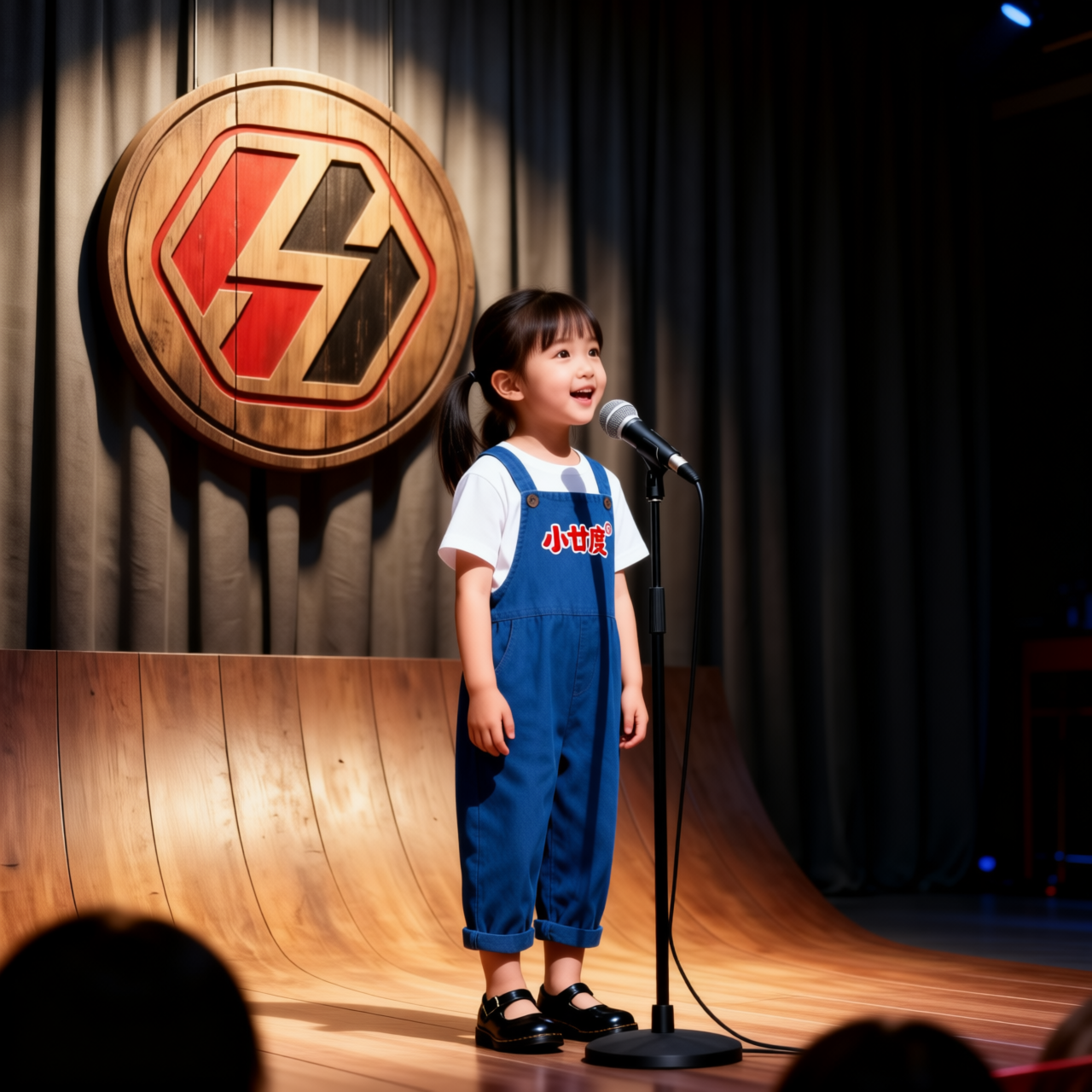 Reference the uploaded scene image as the stage and background throughout this video. Keep the background consistent and unchanged. Character appearance is defined by the reference image. She says in her cute deadpan voice with playful mischief: 你们知道,我人生第一次社死是什么时候吗? 小女孩站在舞台中央,表情异常认真,双手在胸前交握,对着镜头说话,带有一点点戏剧性的停顿。她的表情从认真慢慢转变为有点狡黠的期待感,像是在等观众凑近。微动态:冷静站姿、略微的停顿、眼神里闪着调皮、嘴角忍不住要笑。 Micro-animations: calm stance, slight pause, eyes flickering with mischief.Reference the uploaded scene image as the stage and background throughout this video. Keep the background consistent and unchanged. Character appearance is defined by the reference image. 小女孩站在舞台中央,表情异常认真,双手在胸前交握,对着镜头说话,带有一点点戏剧性的停顿。她的表情从认真慢慢转变为有点狡黠的期待感,像是在等观众凑近。微动态:冷静站姿、略微的停顿、眼神里闪着调皮、嘴角忍不住要笑。Reference the uploaded scene image as the stage and background throughout this video. Keep the background consistent and unchanged. Character appearance is defined by the reference image. She says in her cute deadpan voice with playful mischief: 就那天!幼儿园表演,我穿着超漂亮裙子站C位!忘词了... 小女孩用讲故事的能量叙述,小手比划着,突然她的表情变成一片空白,她僵住,嘴巴微微张开,眼睛发直。她小声自言自语地说:忘词了... 微动态:兴奋讲故事的手势、捏着手指强调、忘词瞬间的空白表情、僵住,大眼睛里的慌张。 Micro-animations: calm stance, slight pause, eyes flickering with mischief.Reference the uploaded scene image as the stage and background throughout this video. Keep the background consistent and unchanged. Character appearance is defined by the reference image. 小女孩用讲故事的能量叙述,小手比划着,突然她的表情变成一片空白,她僵住,嘴巴微微张开,眼睛发直。她小声自言自语地说:忘词了... 微动态:兴奋讲故事的手势、捏着手指强调、忘词瞬间的空白表情、僵住,大眼睛里的慌张。Reference the uploaded scene image as the stage and background throughout this video. Keep the background consistent and unchanged. Character appearance is defined by the reference image. She says in her cute deadpan voice with playful mischief: 老师,我不知道...但是我裙子好看吗? 台下传来老师的声音,她低声提示地喊:小暖,白——白——!小女孩看向声音,又看向镜头。她困惑地问:老师,我不知道...但是我裙子好看吗?观众发出轻轻的笑声。微动态:看向台下声音、犹豫、鼓起勇气问出裙子问题、略微尴尬又期待的表情。 Micro-animations: calm stance, slight pause, eyes flickering with mischief.Reference the uploaded scene image as the stage and background throughout this video. Keep the background consistent and unchanged. Character appearance is defined by the reference image. 台下传来老师的声音,她低声提示地喊:小暖,白——白——!小女孩看向声音,又看向镜头。她困惑地问:老师,我不知道...但是我裙子好看吗?观众发出轻轻的笑声。微动态:看向台下声音、犹豫、鼓起勇气问出裙子问题、略微尴尬又期待的表情。Reference the uploaded scene image as the stage and background throughout this video. Keep the background consistent and unchanged. Character appearance is defined by the reference image. She says in her cute deadpan voice with playful mischief: 那一刻,我终于知道了什么叫社死!就是站在C位不知道自己是谁!但是!我的裙子,是全场最好看的! 小女孩突然转身面向观众,表情从略微尴尬转为不服输的自信。她挺起小小的胸膛,小手叉腰。她用完全自信的语气宣告:那一刻,我终于知道了什么叫社死!就是站在C位不知道自己是谁!她停顿了一下,然后用完全的4岁骄傲歪着头说:但是!我的裙子,是全场最好看的!观众瞬间爆发出大笑声,夹杂掌声和口哨,笑声持续到分镜结尾。微动态:突然转身面向观众、挺胸膛、小手叉腰、不服输的傲娇姿态、死脸抛出两句金句、微微歪头等着被夸、观众爆笑的瞬间反应。 Micro-animations: calm stance, slight pause, eyes flickering with mischief.Reference the uploaded scene image as the stage and background throughout this video. Keep the background consistent and unchanged. Character appearance is defined by the reference image. 小女孩突然转身面向观众,表情从略微尴尬转为不服输的自信。她挺起小小的胸膛,小手叉腰。她用完全自信的语气宣告:那一刻,我终于知道了什么叫社死!就是站在C位不知道自己是谁!她停顿了一下,然后用完全的4岁骄傲歪着头说:但是!我的裙子,是全场最好看的!观众瞬间爆发出大笑声,夹杂掌声和口哨,笑声持续到分镜结尾。微动态:突然转身面向观众、挺胸膛、小手叉腰、不服输的傲娇姿态、死脸抛出两句金句、微微歪头等着被夸、观众爆笑的瞬间反应。【音色说明】